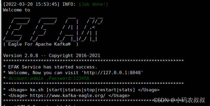 接着启动 kafka eagle,进入到kafka eagle目录的bin目录下,执行启动脚本即可