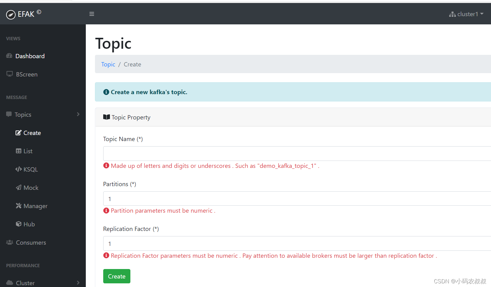 - 可以通过该工具管理各个topic,比如创建新的topic等;