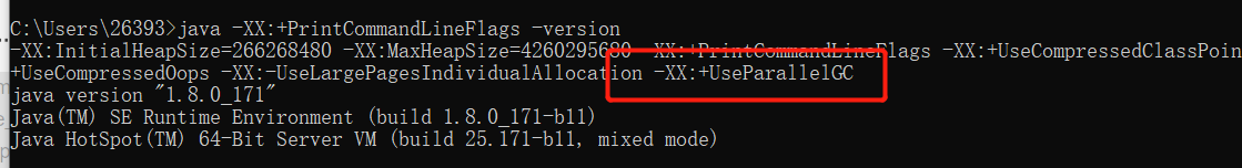 可以使用下面的命令查看本机或者虚拟机上的JVM的垃圾收集器(默认安装的JDK版本)