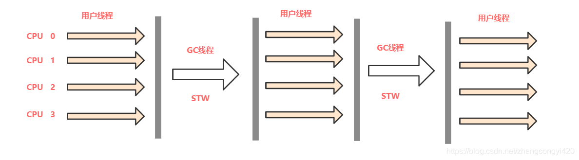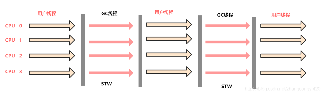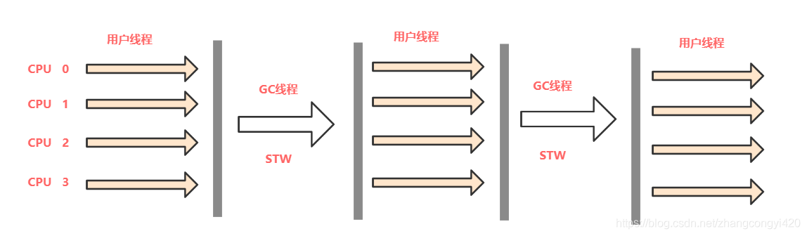 - 会降低用户线程的CPU使用效率(CPU需要分出部分的线程同时处理垃圾回收,以至CPU不能全部用户用户线程的任务处理)