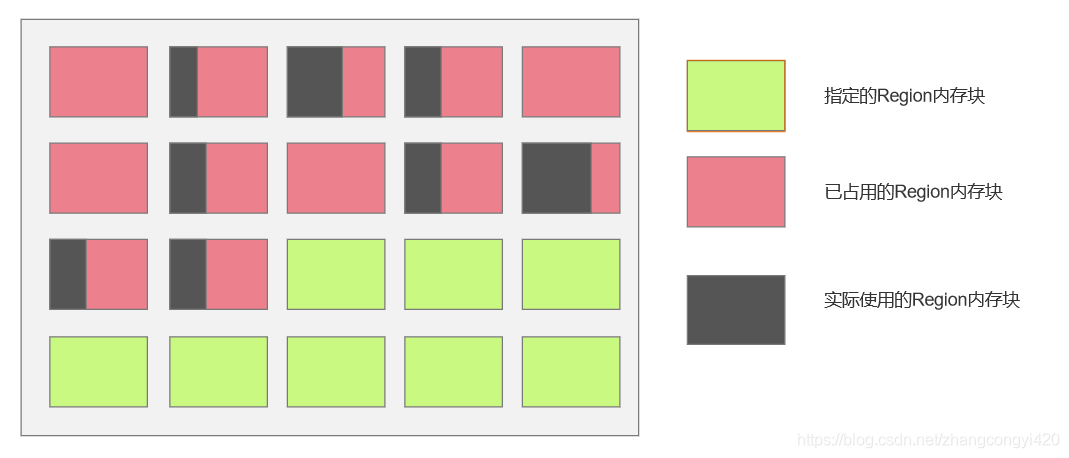- 固定大小内存块,彻底不分代