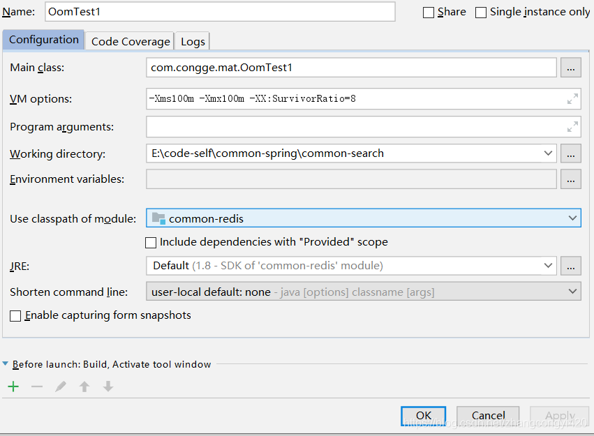 * -Xms100m -Xmx100m -XX:SurvivorRatio=8