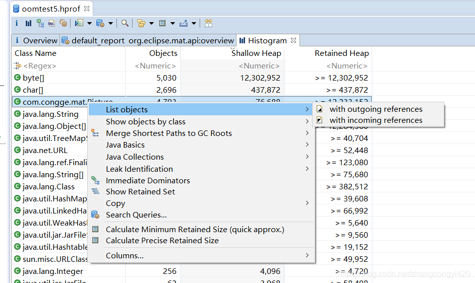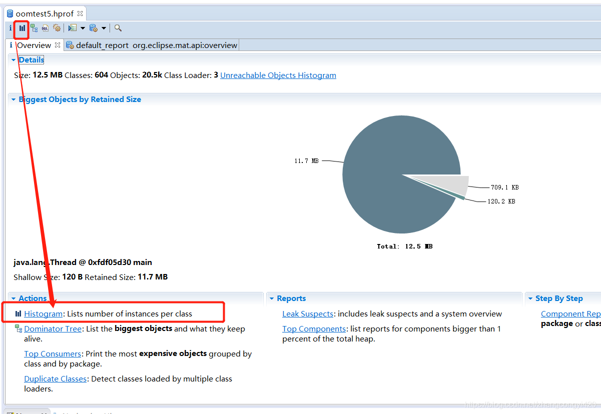 使用: File ——> Open File ,导入刚刚生成的oomtest5这个dump文件,