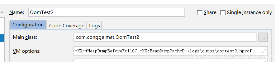 * -XX:+HeapDumpBeforeFullGC -XX:HeapDumpPath=D:\logs\dumps\oomtest2.hprof