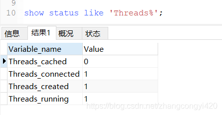 Threads_cached:一共缓存过多少连接,如果在mysql服务器的配置文件中设置了thread_cache_size参数,当前客户端断开之后,服务器处理此客户的线程将会缓存起来,以备下一个连接进来的客户而不是立即销毁(前提是缓存数量未达到上限),可以通过命令:set global thread_cache_size=50 设置或者在 my.cnf中配置