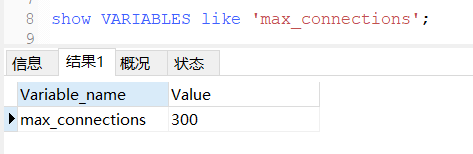 配置完毕后,重启下mysql服务,connections连接数也变成300