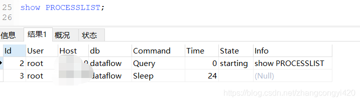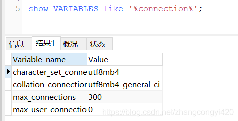 查看当前mysql的connection信息