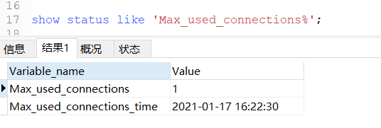 这是一个很有用的参数,可以用于指导一个系统的数据库服务器配置比较合理的最大连接数,因为最大连接数并不是越大越好,可以在系统上线时将 max_connections的值设置的大一点,等到运行一段时间之后,通过观察上面的这个参数值,再进行设置,这也是指导DBA或者开发人员对于mysql服务器是否需要进行扩容或者增加节点的一个很重要的衡量参数