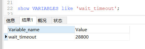 这两个参数都是连接在超过一段时间之后,数据库自动关闭,在这个期间持续的时间,默认是8个小时