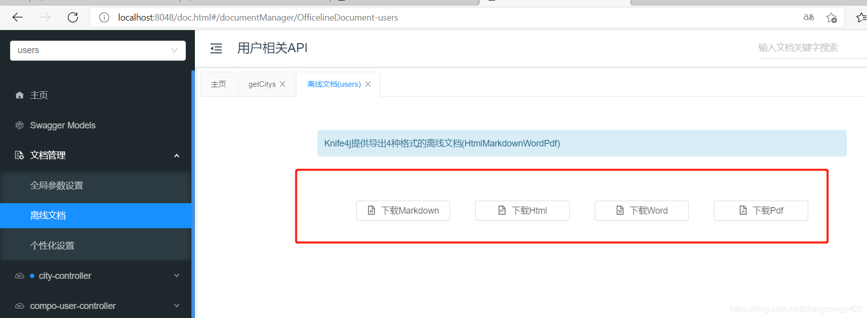 但是单纯使用swagger的话,效果往往并不理想,比如想使用swagger导出一份可以交付的接口文档的话,就有点困难了,这就需要swagger 配合knife4j一起使用了