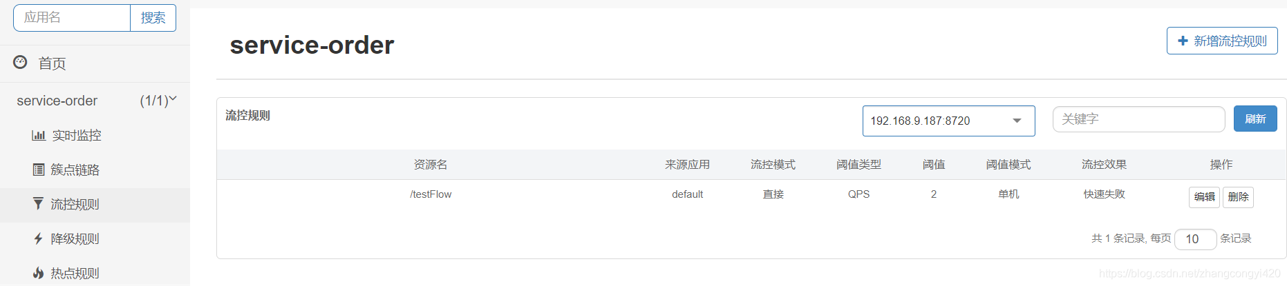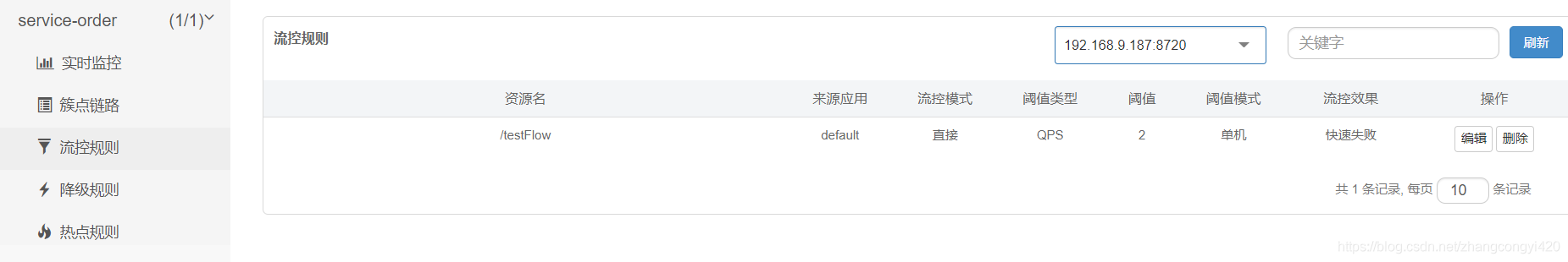 发现竟然有一条配置规则在里面,我们并没有在dashboard中进行配置,可见是直接加载nacos中配置的规则