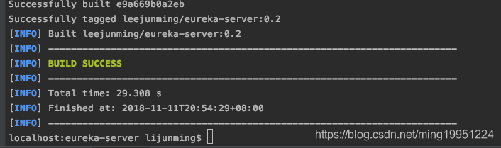 使用 maven clean package docker:build 命令进行推送镜像到docker服务器