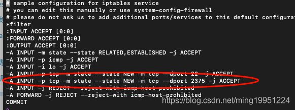 安装成功后,可以看到/etc/sysconfig/iptables 文件了。这时候,可以修改文件,开放要开放的端口了。
