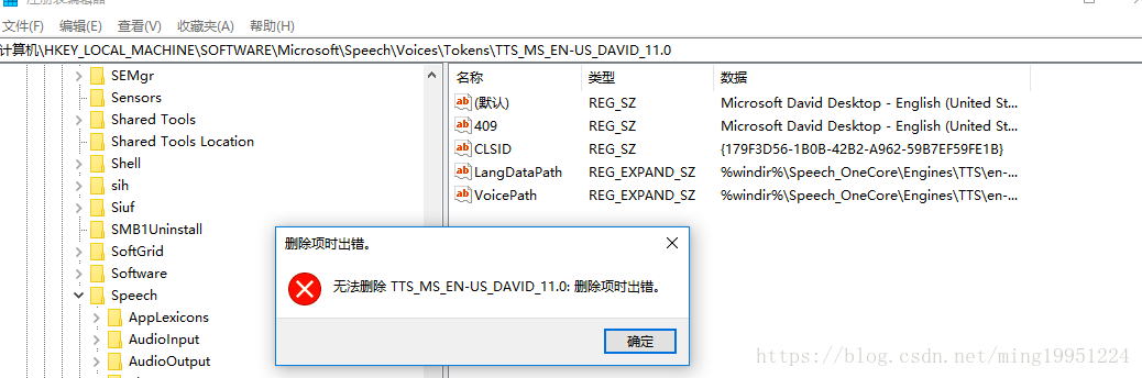 添加完之后,你会发现jacob调用的还是HuiHui作为默认的语音库,这个时候需要手动把HKEY_LOCAL_MACHINE\SOFTWARE\Microsoft\Speech\Voices\Tokens目录下的HuiHui注册信息给删除,