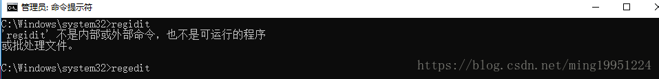 接下来我们进入到注册表,以管理员的身份打开命令行,然后输出regedit进入到注册表