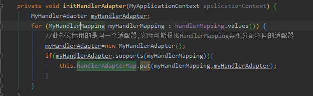 - 4.获取路由对应的适配器myHandlerAdapter,并执行handle方法