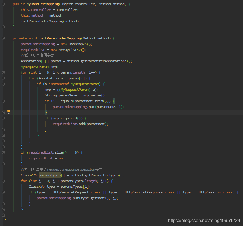 - 5.在MyHandlerMapping构造函数中对MyRequestParam注解进行绑定,并把必选参数名称加入到requiredList中
