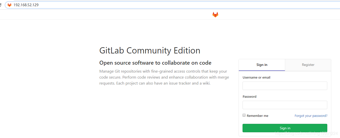访问地址: http://192.168.52.129 访问,(ip需要换成你自己的gitlab服务器地址)