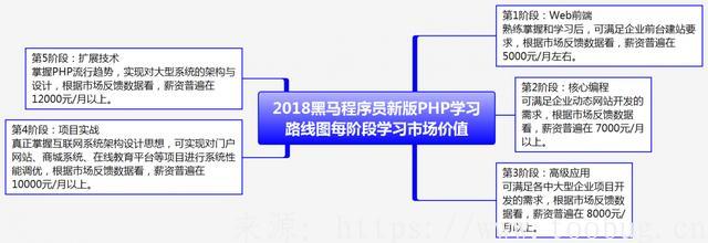 又到跳槽季,最近被问到最多的话题就是,PHP薪资哪家强?前景如何?大家貌似都很关心PHP行业发展以及自己的薪资是否具有竞争力,今天和大家分享一下黑马程序员老师整理的2018年PHP最新学习路线,从今天起不要再找借口,不要再说想学PHP却没有资源,赶快行动起来,PHP等你来探索,高薪距你只差一步!