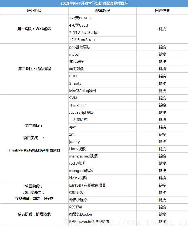 四、2018新版PHP学习路线图---各阶段配套视频推荐