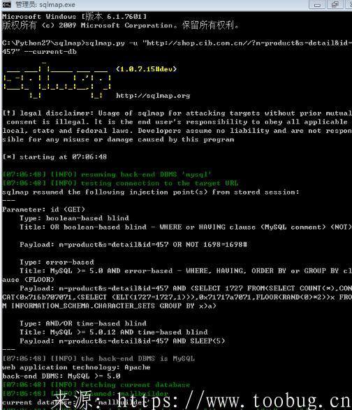 http://shop.***.com.cn//?m=product&s=detail&id=457 存在注入