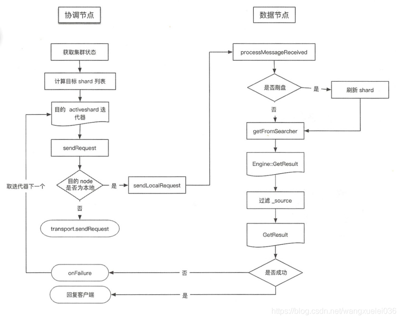 (3)NODE2将文档返回给NODE1,NODE1将文档返回给客户端(因为只是获取单个数据信息,不会涉及协调节点的聚合等操作)