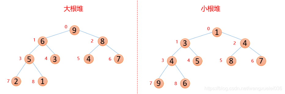 n个关键字序列List[1,2,3...N]称为堆(后面简写为L),物理结构可以是顺序存储也可以是链式存储(在例子中我们统一使用顺序存储结构),逻辑结构则是完全二叉树(要具有抽象思想),堆又分为大根堆和小根堆。