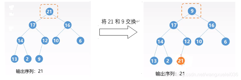 // 如果最大值不是当前非叶子节点的值,那么就把当前节点和最大值的子节点值互换