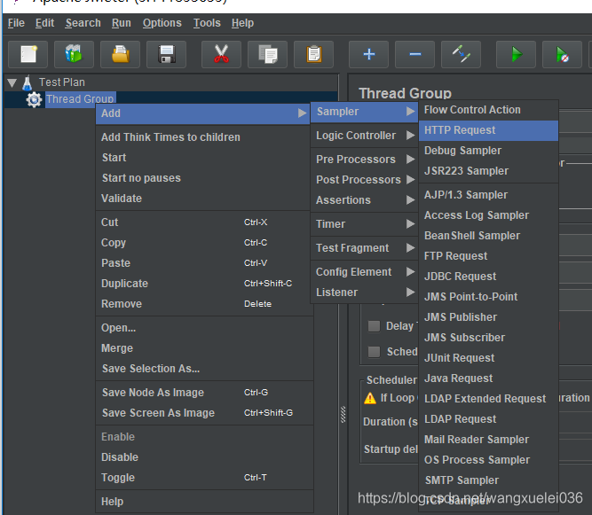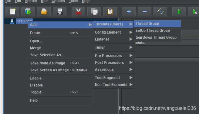 在“测试计划”上右键 add【添加】-->【Threads(Users)】-->Thread Group【线程组】。(如何不习惯英文的,可以找中文版的)