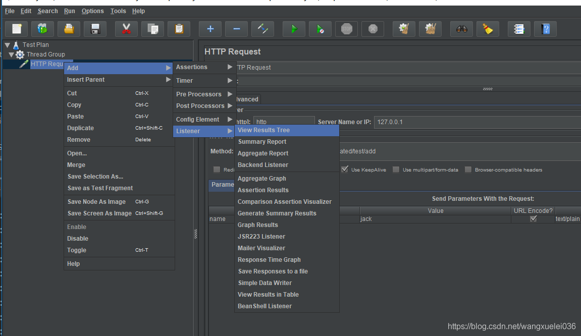 到这里其实已经可以保存并运行了,但是我们有时候也需要看返回的结果信息,那么需要添加一个监听器
