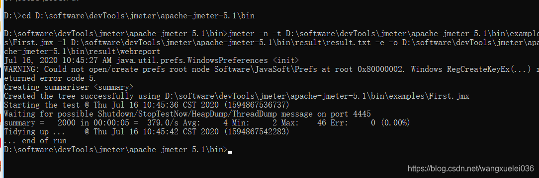 jmeter -n -t example\First.jmx -l result\result.txt -e -o result\webreport 这里将命令简写了,个人使用的时候喜欢用绝对路劲。
