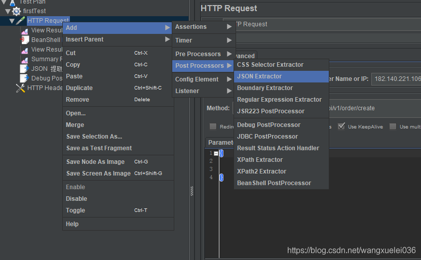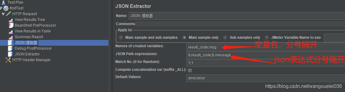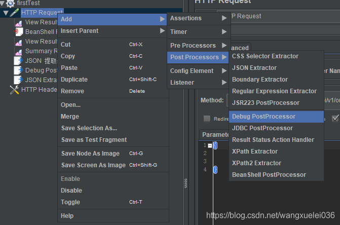 为了检查通过json提取器是否正常获取到值,可添加Debug PostProcessor来检查,注意正常跑用例时删除或禁用它。