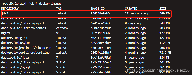 这时候看到jdk的镜像增长到了580M。