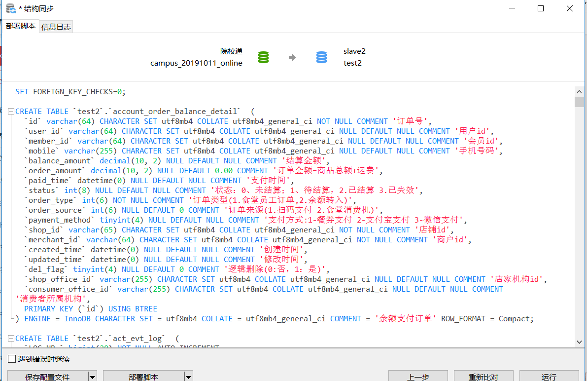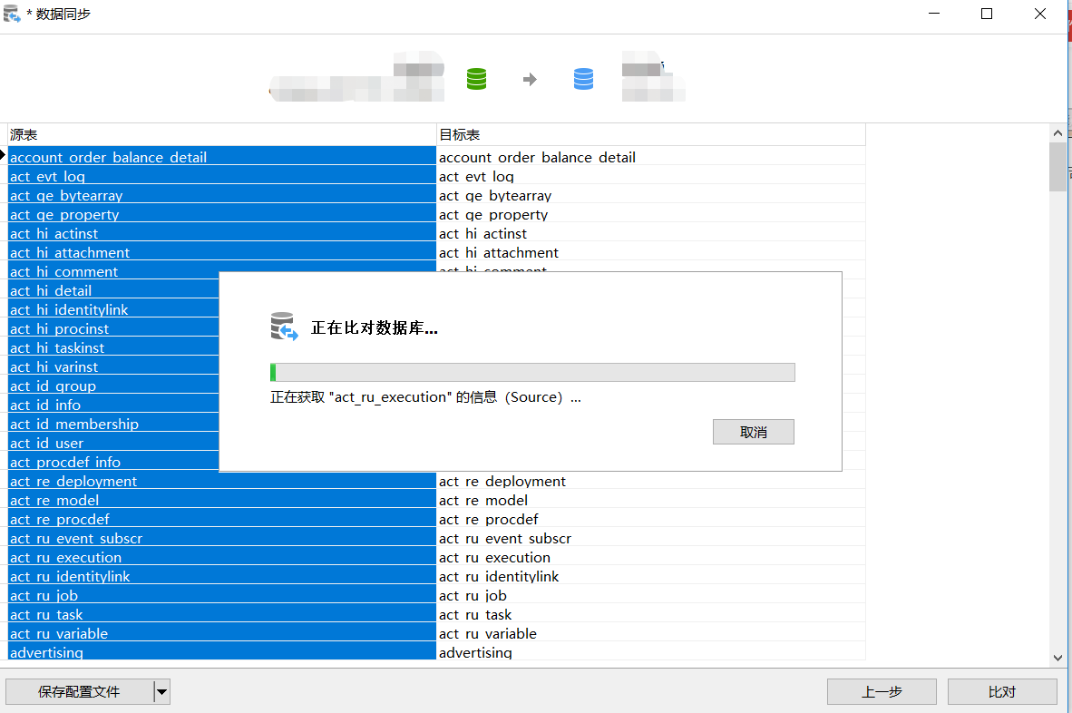 然后点击比对,等待数据库结构的对比