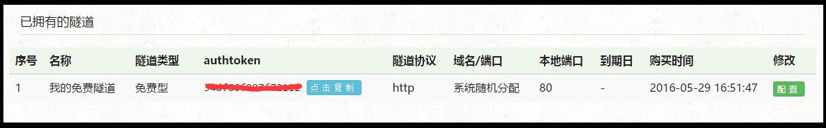 7.取得authtoken 在网站后台,我的隧道处,可以看到刚才购买的隧道