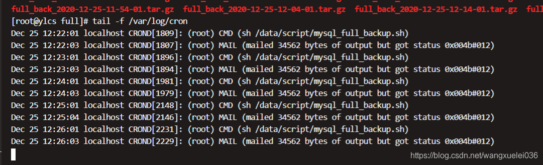 tail -f /var/log/cron 全量备份有了,但是间隔太大,许多数据容易丢失怎么办,Xtrabackup还提供了增量备份,但是前提是依赖于全量备份,后续待补充。。。。