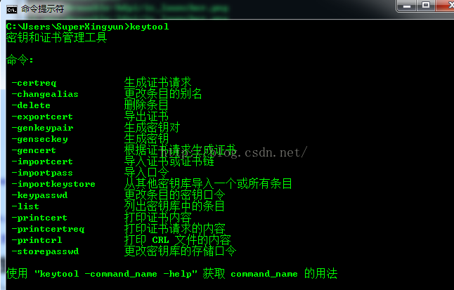-keystore 指定密钥库的名称(产生的各类信息将不在.keystore文件中)