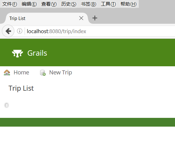 grails run-app 9.打开浏览器输入地址: http://localhost:8080/trip/index