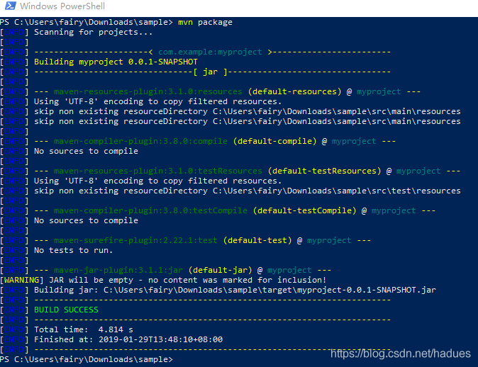我们查看target目录,应该能看到myproject-0.0.1-SNAPSHOT.jar。