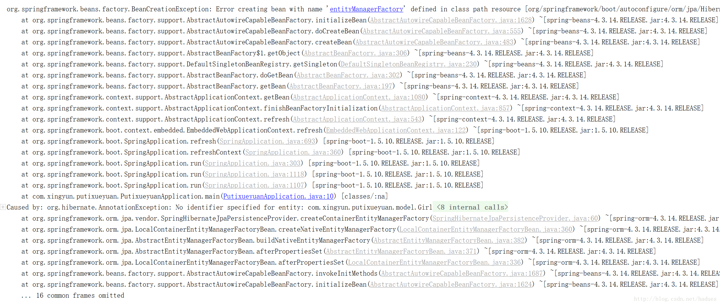 org.springframework.beans.factory.BeanCreationException: Error creating bean with name ‘entityManagerFactory’ defined in class path resource