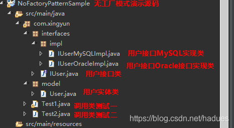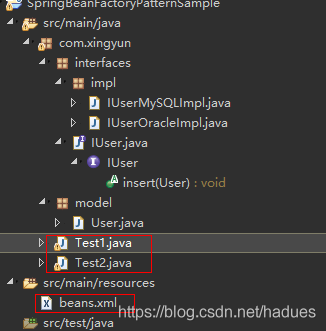 项目很简单,一个实体类,一个接口,两个接口实现类。