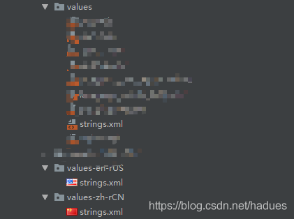 比如国际化需要支持简体中文和美式英语,需要这三个string.xml