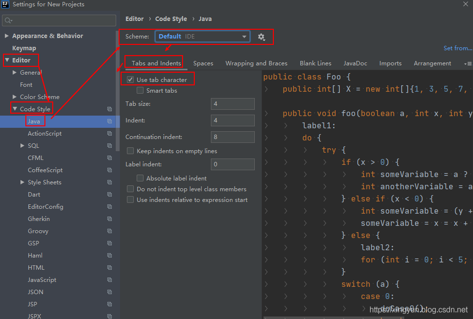 Editor——》Code Style——》Java ——》Tabs and Indents