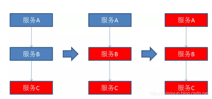 一旦下游服务C因某些原因变得不可用,积压了大量请求,服务B的请求线程也随之阻塞。线程资源逐渐耗尽,使得服务B也变得不可用。紧接着,服务A也变为不可用,整个调用链路被拖垮。