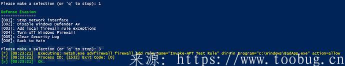 添加本地防火墙规则例外 ? 将虚构规则“Invoke-APT测试规则”添加到Windows高级防火墙