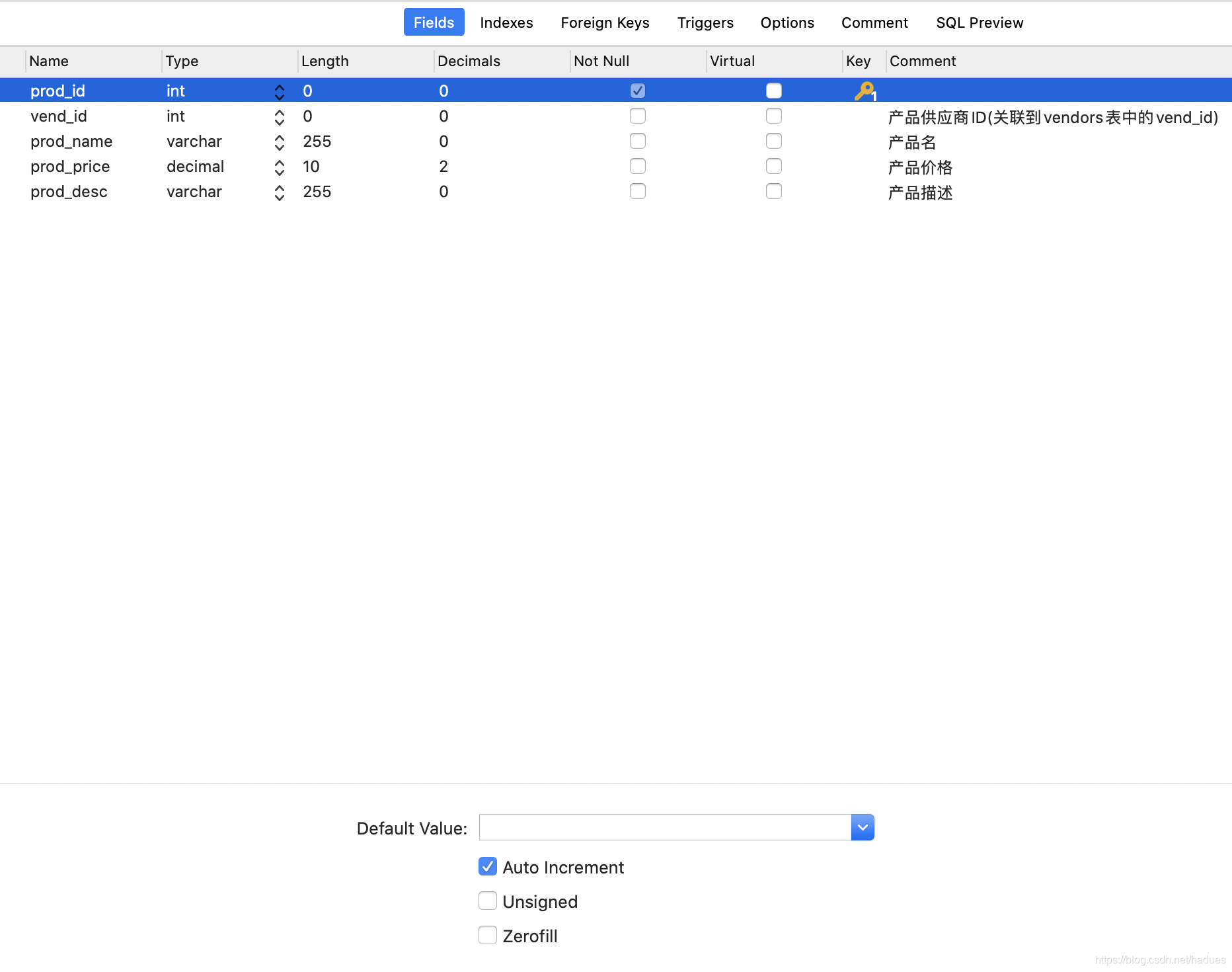 `prod_id` int NOT NULL AUTO_INCREMENT,