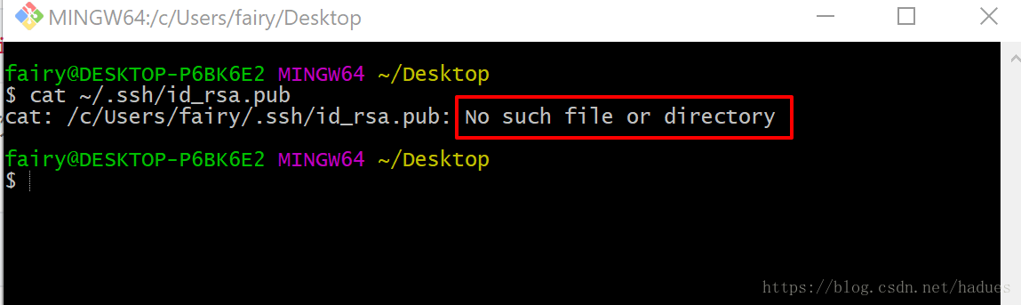 出现上面这种提示,就说明没有这个文件,那么需要我们手动创建ssh公钥和私钥