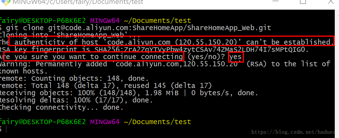 第一次执行可能会报这个错,我们输入yes 就会继续下载