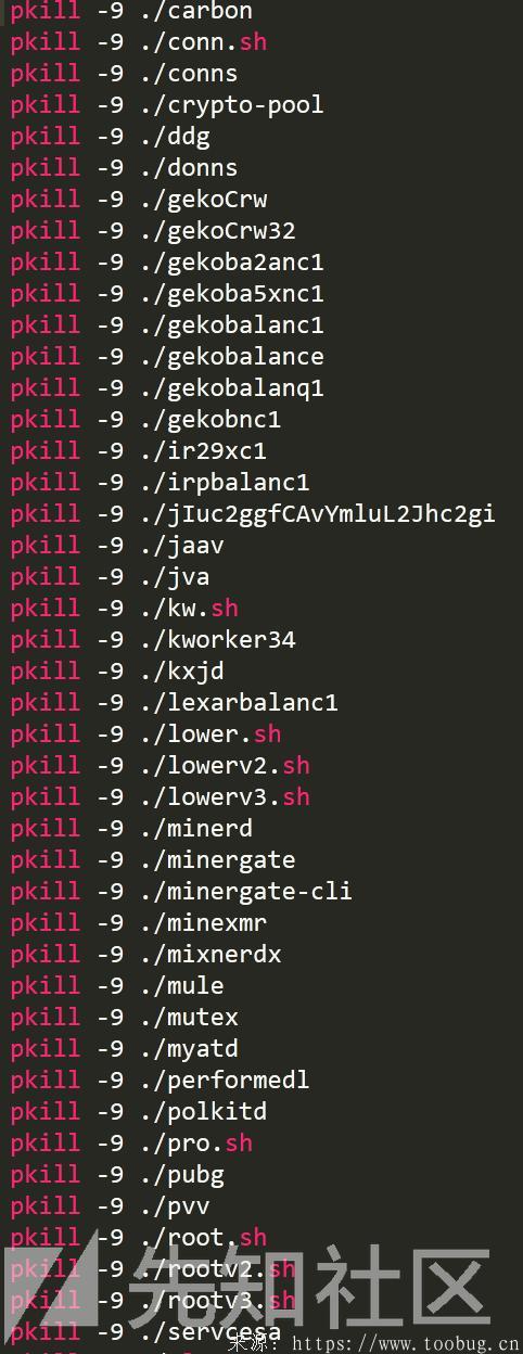 尝试结束市面上其他挖矿进程;其部分代码如下: